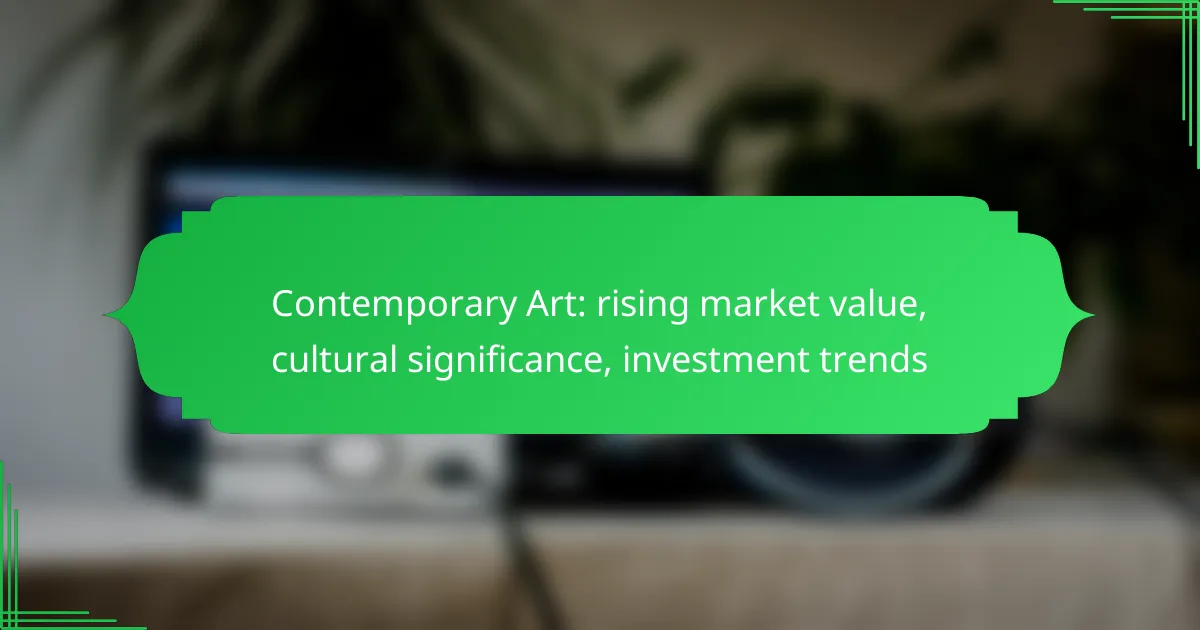 Collectors assess contemporary art investments by evaluating various factors that influence both market value and cultural significance. Key considerations include market reports, provenance, authenticity, and expert consultations.